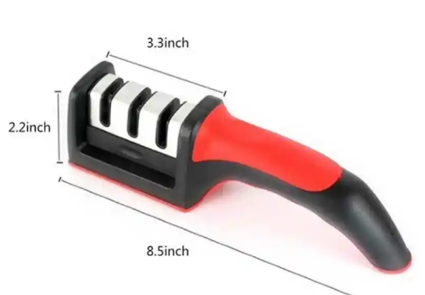 · Package Includes: 1x 3-stage kitchen knife sharpener with non-slip rubber handle