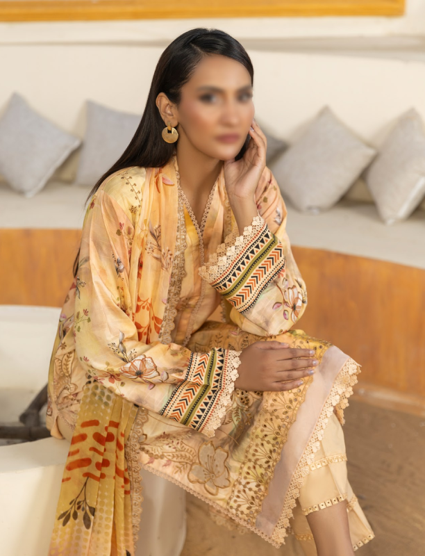 l 3 Piece Unstitched Suit — Shirt, Trouser & Dupatta