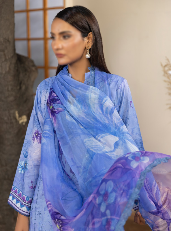 l 3 Piece Unstitched Suit — Shirt, Trouser & Dupatta