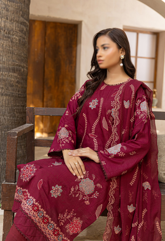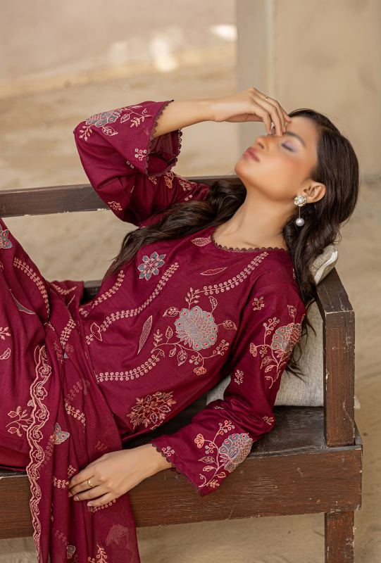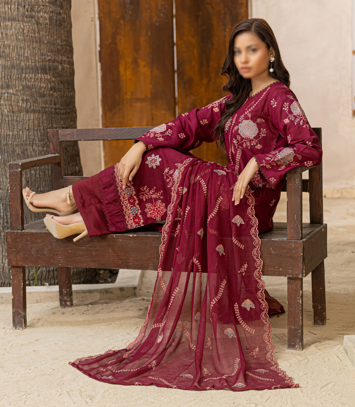 Experience the art of elegance with Fantak AURA Vol.01, a 3 Piece Unstitched Luxury Doriya Viscose Embroidered Collection featuring 6 refined designs. Crafted with premium Viscose Doriya fabric, this collection delivers warmth, comfort, and sophistication for the winter season. Each outfit is beautifully embroidered and paired with a Chiffon Embroidered Dupatta, making it a perfect blend of grace and luxury.