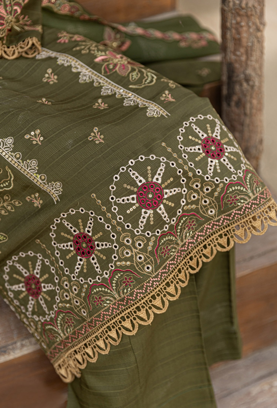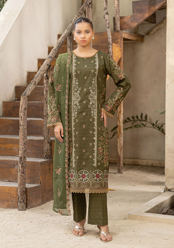 Experience the art of elegance with Fantak AURA Vol.01, a 3 Piece Unstitched Luxury Doriya Viscose Embroidered Collection featuring 6 refined designs. Crafted with premium Viscose Doriya fabric, this collection delivers warmth, comfort, and sophistication for the winter season. Each outfit is beautifully embroidered and paired with a Chiffon Embroidered Dupatta, making it a perfect blend of grace and luxury.