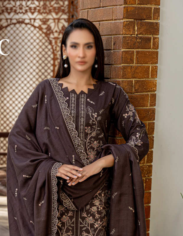 Add timeless charm to your winter wardrobe with Fantak SIGNATURE Vol.01, a 3 Piece Unstitched Luxury Slub Peach Embroidered Collection featuring 6 elegant designs. Crafted with rich Slub Peach fabric, this collection combines warmth, comfort, and high-end fashion. Each suit is beautifully detailed with fine embroidery and paired with a Tarkashi Embroidered Shawl, offering a perfect balance of luxury and grace.