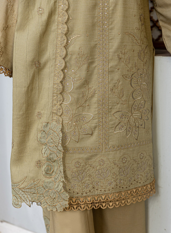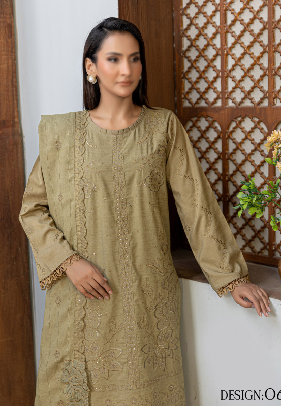 Add timeless charm to your winter wardrobe with Fantak SIGNATURE Vol.01, a 3 Piece Unstitched Luxury Slub Peach Embroidered Collection featuring 6 elegant designs. Crafted with rich Slub Peach fabric, this collection combines warmth, comfort, and high-end fashion. Each suit is beautifully detailed with fine embroidery and paired with a Tarkashi Embroidered Shawl, offering a perfect balance of luxury and grace.