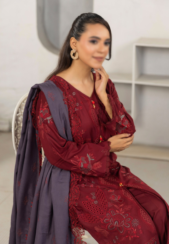 l 3 Piece Unstitched Suit — Shirt, Trouser & Shawl