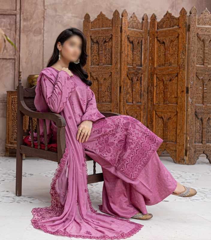 l 3 Piece Unstitched Suit — Shirt, Trouser & Dupatta