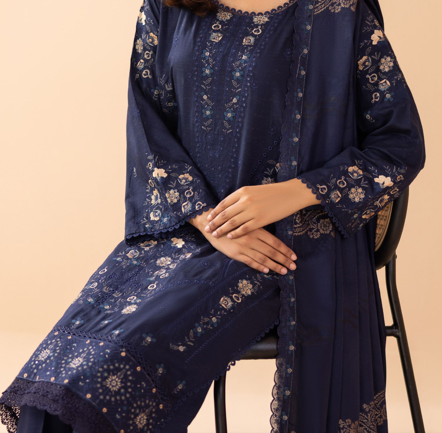 * 3 Piece Unstitched Suit — Shirt, Trouser & Dupatta