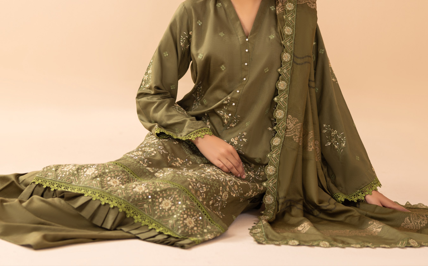 * 3 Piece Unstitched Suit — Shirt, Trouser & Dupatta