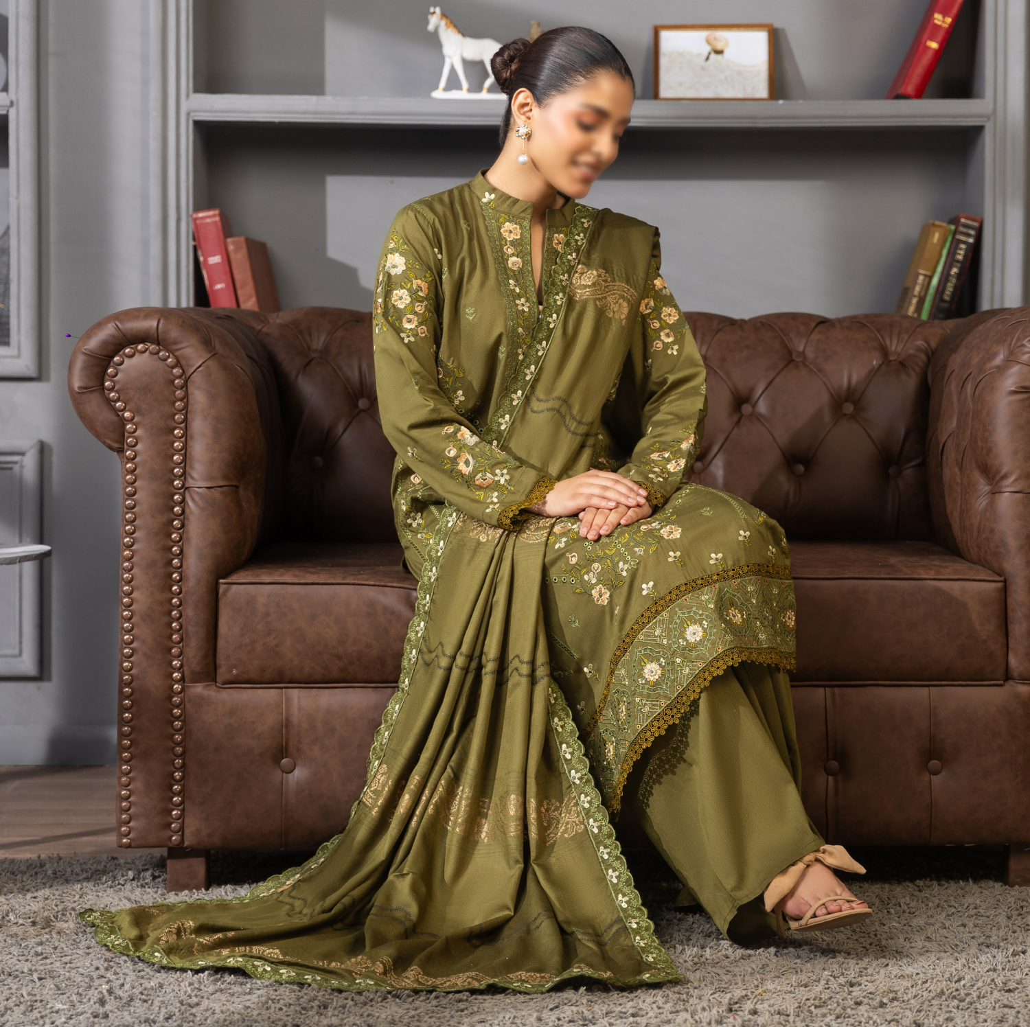 l Jacquard Embroidered Dupatta adds timeless charm