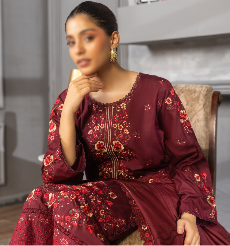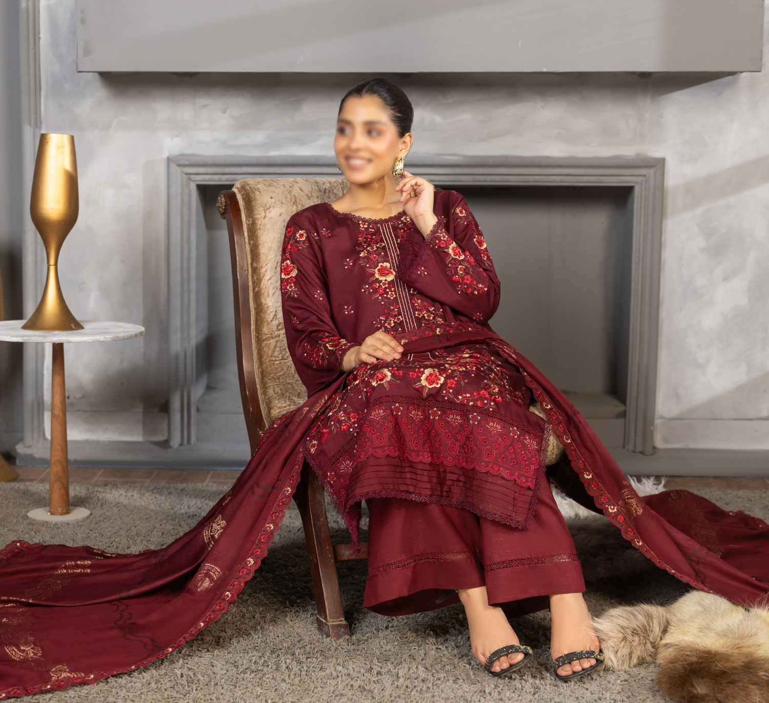 Unveil a new level of sophistication with Fantak TASSUR Vol.02, a Luxury 3 Piece Unstitched Collection designed for those who appreciate elegance with comfort. Crafted from Fancy Doriya Viscose, each outfit features exquisite embroidery work and comes with a Jacquard Embroidered Dupatta, making it the perfect choice for your winter wardrobe.