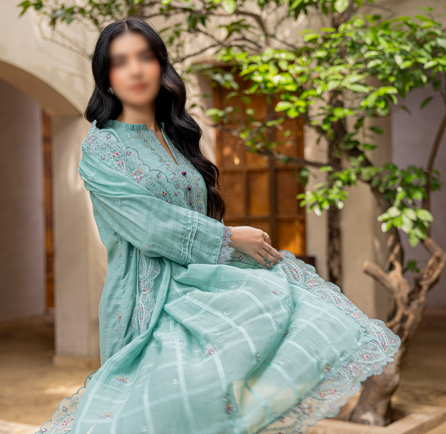 l 3 Piece Unstitched Suit — Shirt, Trouser & Dupatta