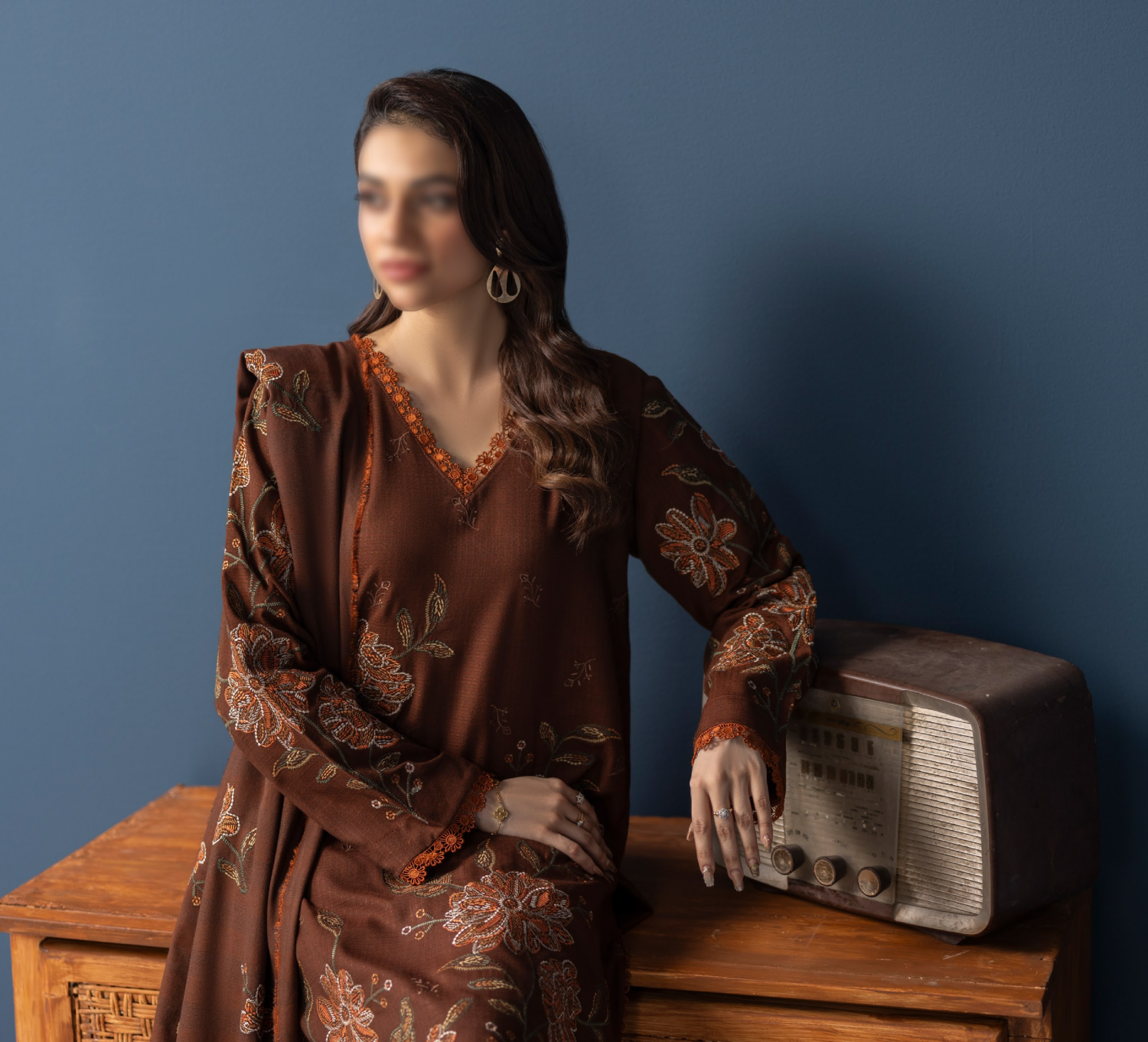 Wrap yourself in luxury with Fantak ZIMAL Vol.01, a 3 Piece Unstitched Luxury Peach Mono Zari Embroidered Collection featuring 6 elegant designs. Made from soft and warm Peach Mono fabric, this collection is designed to bring sophistication and comfort together for the winter season. Each suit showcases intricate Zari Embroidery and comes with a Peach Check Embroidered Shawl, creating a classy and timeless winter ensemble.