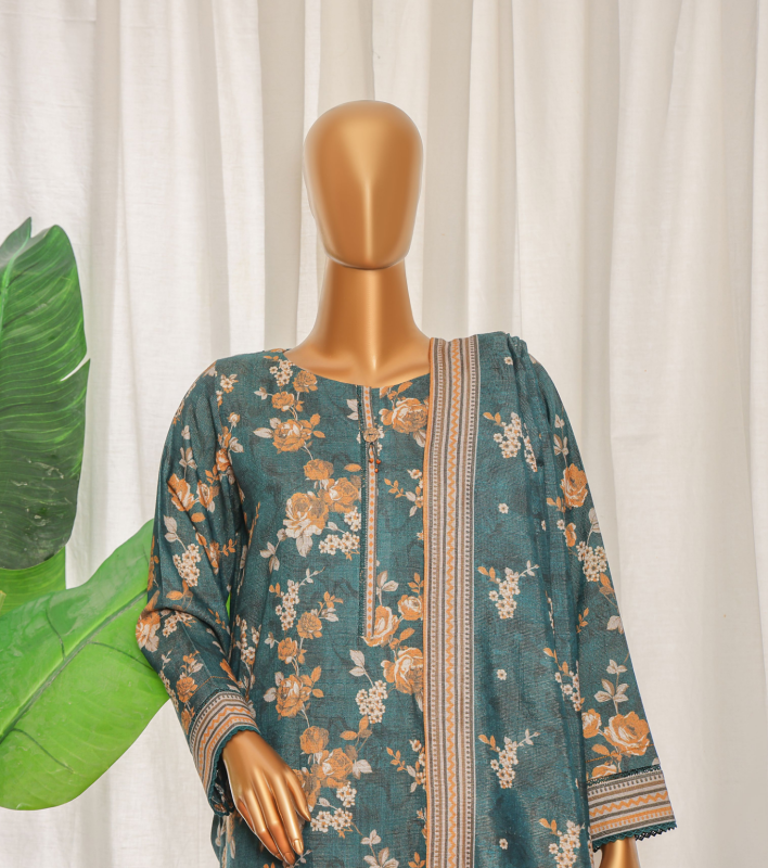 3PC Premium Khaddar Unstitched Suit with Elegant Chimki Embroidery