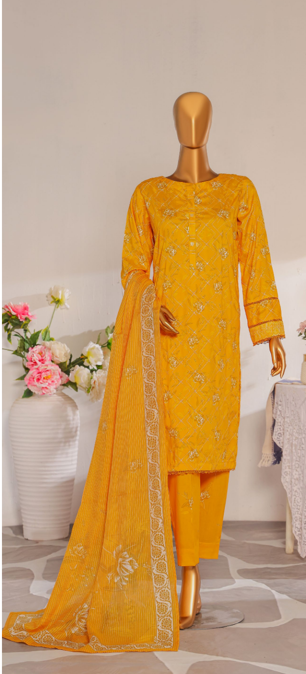 Experience ultimate comfort and refined style with Visit N Buy's exclusive Unstitched Mother Linen Embroidered Collection. This luxurious 3-piece suit is crafted from premium, high-quality Mother Linen Fabric, known for its excellent texture and warmth. The suit features exquisite Embroidery Work on the shirt and is elegantly paired with a matching Embroidered or Printed Dupatta, perfect for sophisticated daily wear and occasions this season.