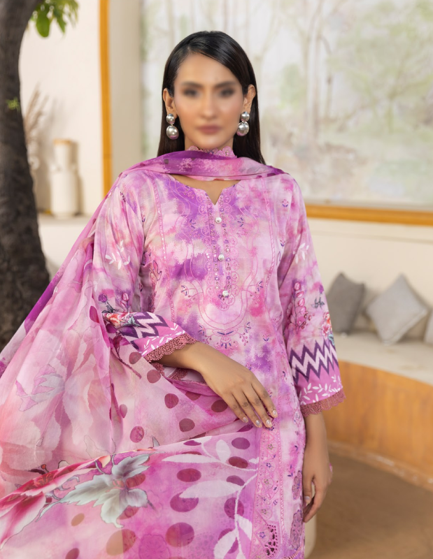 l 3 Piece Unstitched Suit — Shirt, Trouser & Dupatta