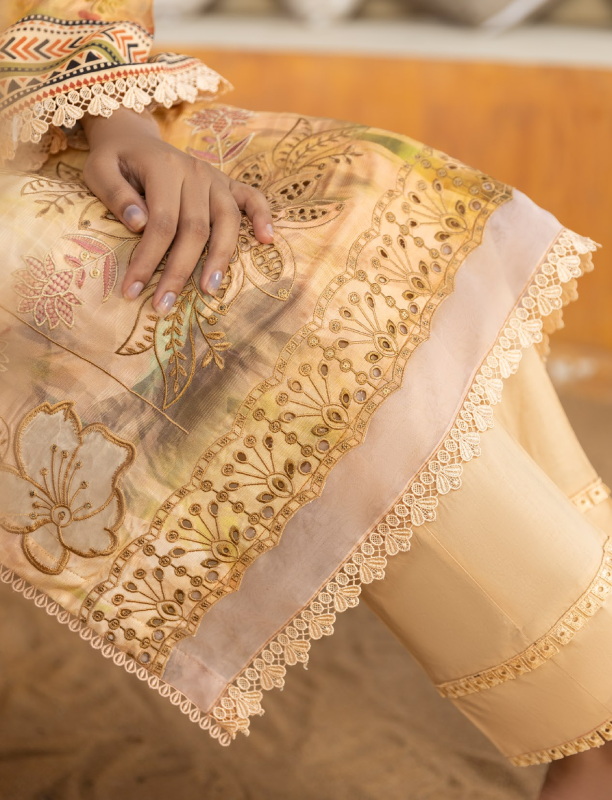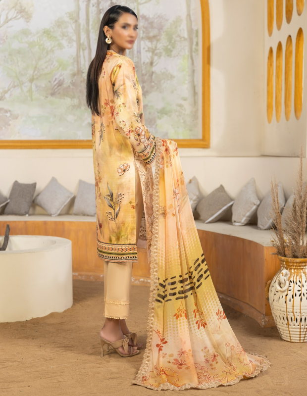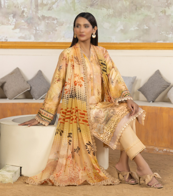 l 3 Piece Unstitched Suit — Shirt, Trouser & Dupatta