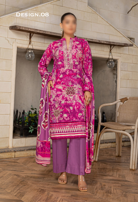 Unveil your winter charm with Fantak AKS Vol.01 — a 3 Piece Unstitched Digital Print Staple Embroidered Collection featuring 10 signature designs. Crafted with premium staple fabric, this collection ensures warmth, comfort, and elegance, while the digitally printed patterns and embroidery add a modern designer touch. Each suit is paired with a matching digital print staple dupatta to complete your perfect winter look.