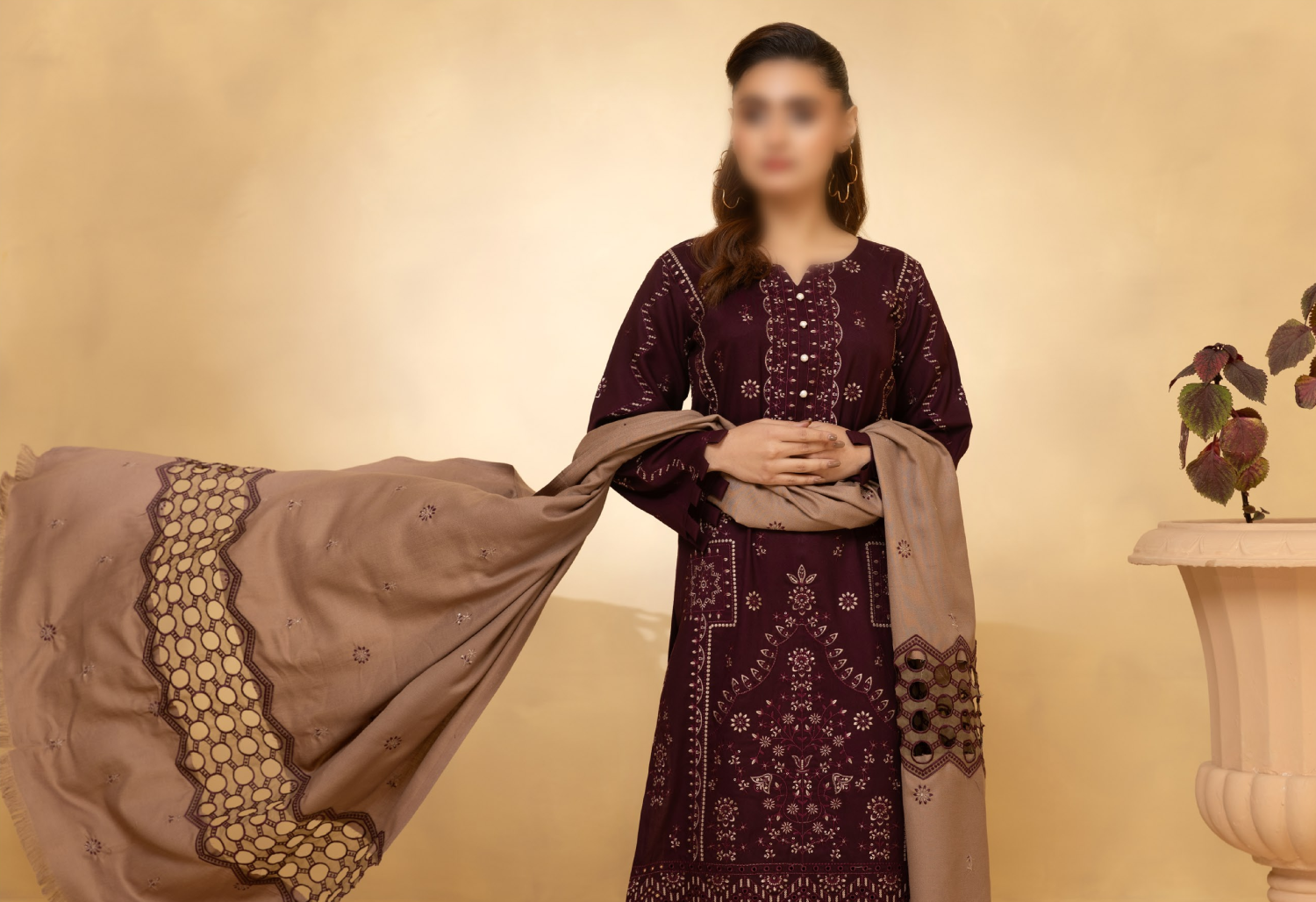 Experience refined winter luxury with Fantak ANDAAZ Vol.02, a Luxury 3 Piece Unstitched Collection crafted for elegance and comfort. Made from Premium Dhanak Fabric, each suit features beautiful intricate embroidery paired with a Fancy Woolen Embroidered Shawl, creating a stunning winter look that is classy, warm and premium in every detail.