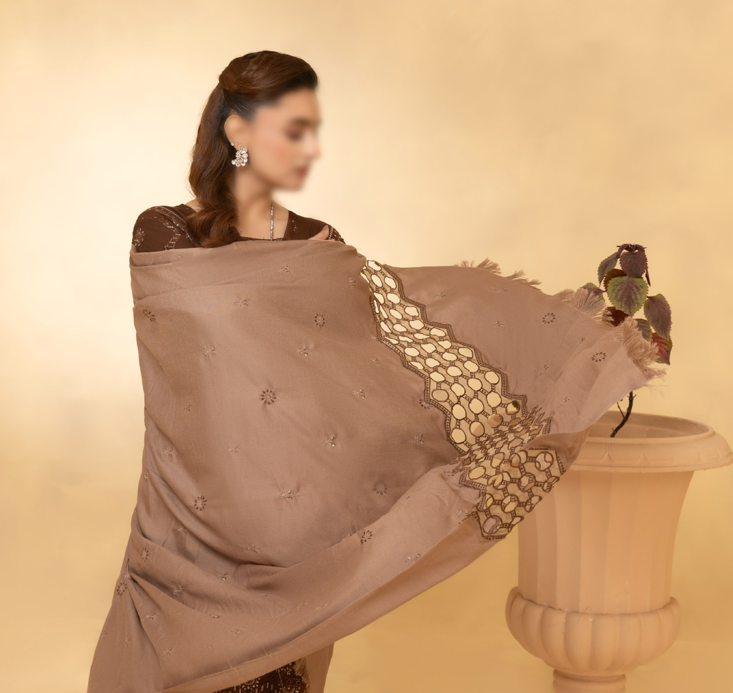 Experience refined winter luxury with Fantak ANDAAZ Vol.02, a Luxury 3 Piece Unstitched Collection crafted for elegance and comfort. Made from Premium Dhanak Fabric, each suit features beautiful intricate embroidery paired with a Fancy Woolen Embroidered Shawl, creating a stunning winter look that is classy, warm and premium in every detail.