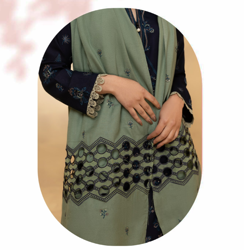 Experience refined winter luxury with Fantak ANDAAZ Vol.02, a Luxury 3 Piece Unstitched Collection crafted for elegance and comfort. Made from Premium Dhanak Fabric, each suit features beautiful intricate embroidery paired with a Fancy Woolen Embroidered Shawl, creating a stunning winter look that is classy, warm and premium in every detail.