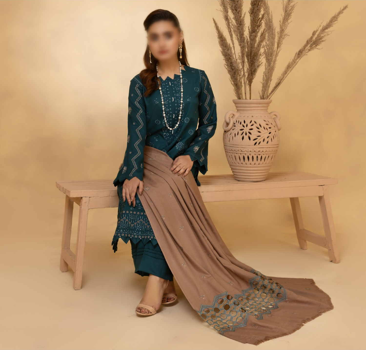Experience refined winter luxury with Fantak ANDAAZ Vol.02, a Luxury 3 Piece Unstitched Collection crafted for elegance and comfort. Made from Premium Dhanak Fabric, each suit features beautiful intricate embroidery paired with a Fancy Woolen Embroidered Shawl, creating a stunning winter look that is classy, warm and premium in every detail.