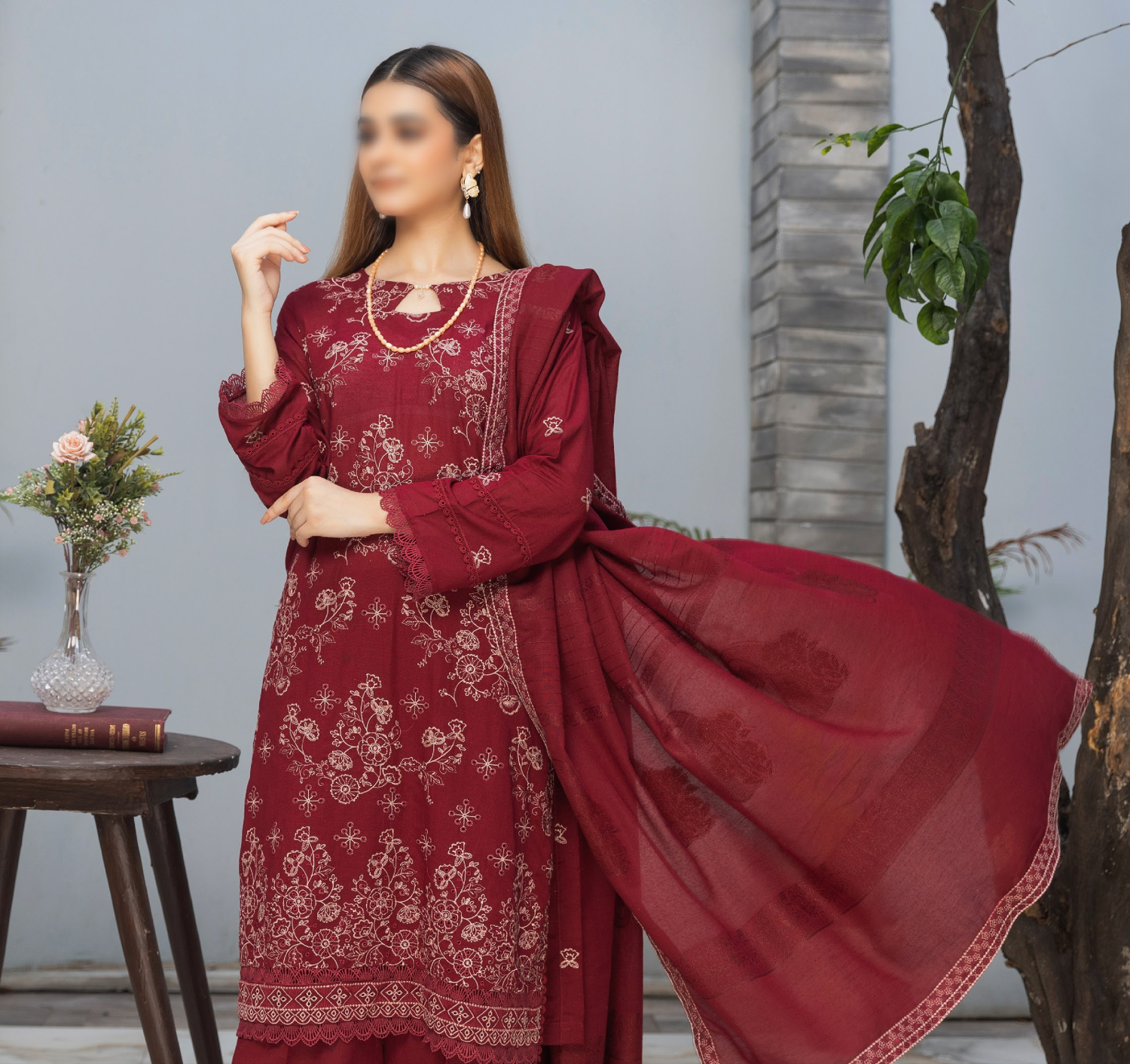 l 3 Piece Unstitched Suit — Shirt, Trouser & Dupatta