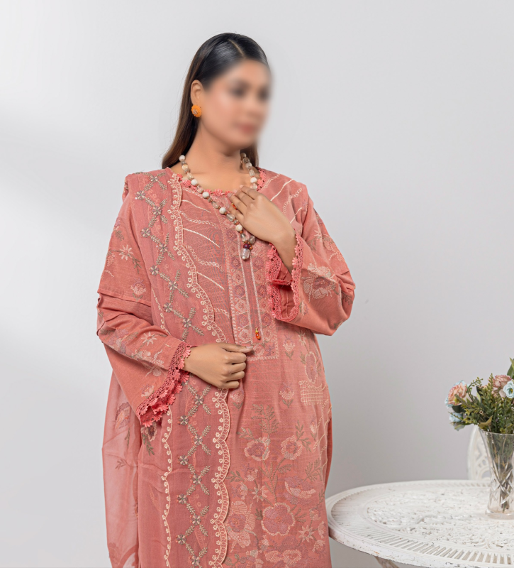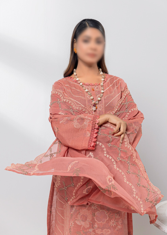l 3 Piece Unstitched Suit — Shirt, Trouser & Dupatta