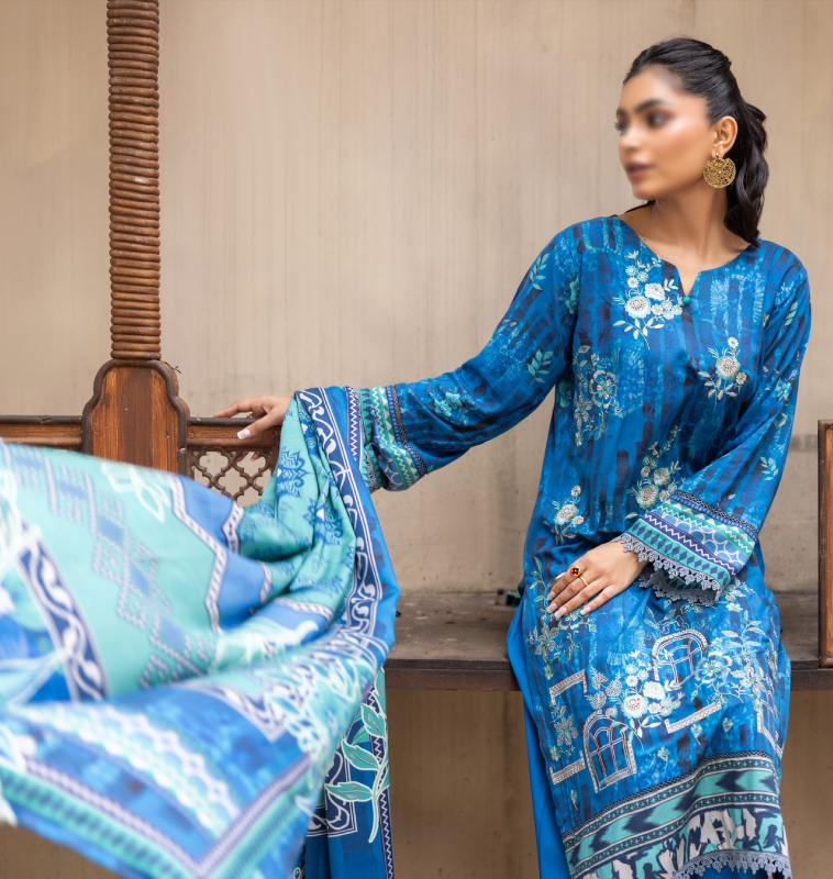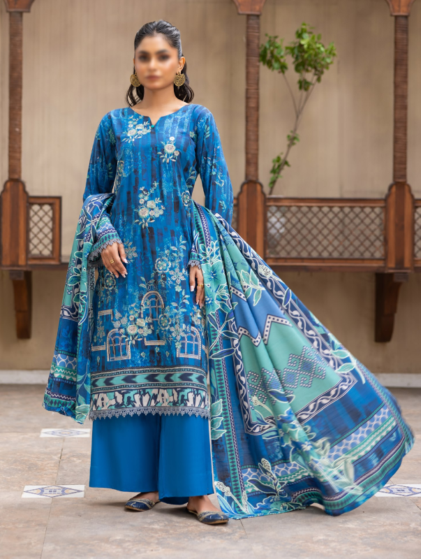 l 3 Piece Unstitched Suit — Shirt, Trouser & Dupatta