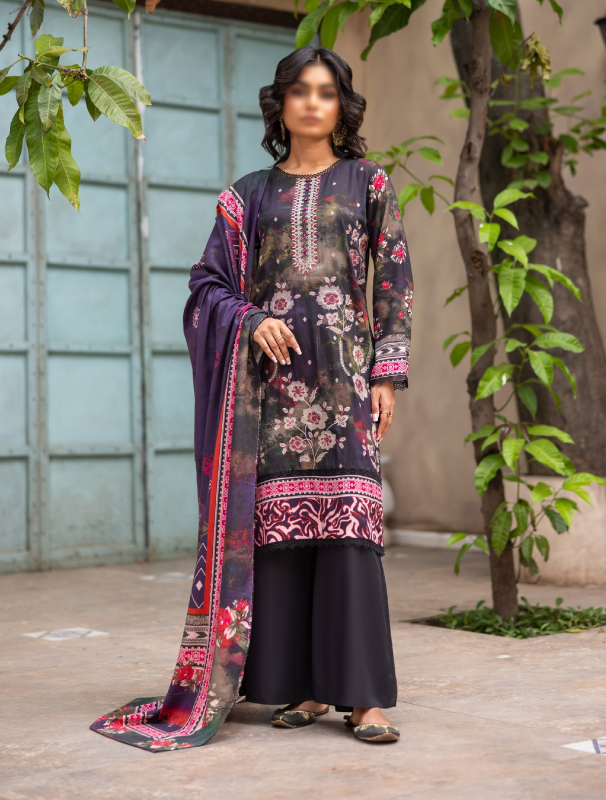 l 3 Piece Unstitched Suit — Shirt, Trouser & Dupatta