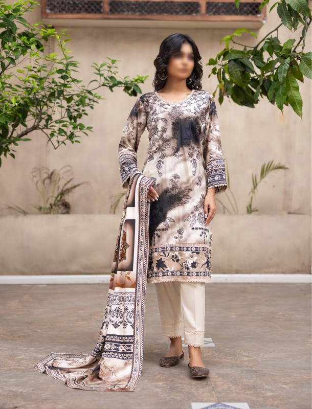 l 3 Piece Unstitched Suit — Shirt, Trouser & Dupatta