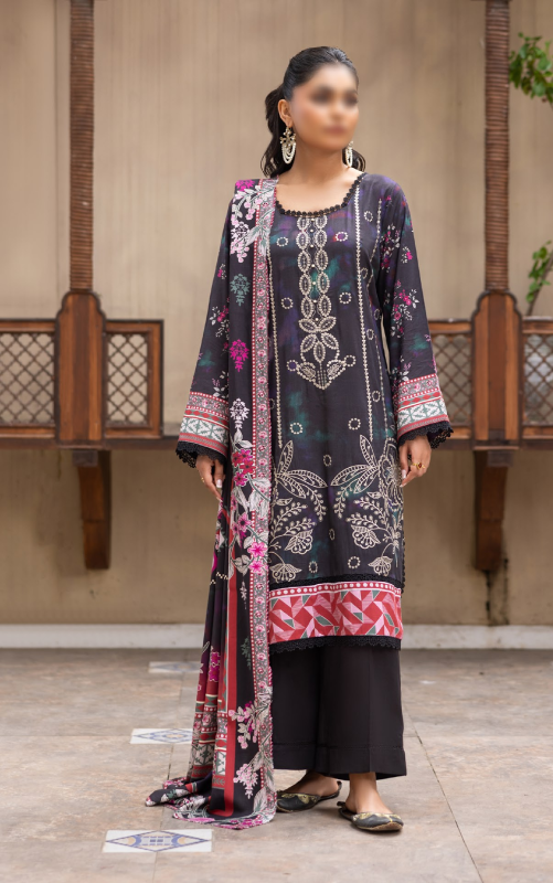 l 3 Piece Unstitched Suit — Shirt, Trouser & Dupatta