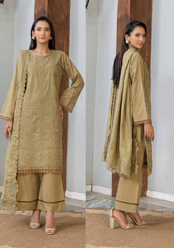 Add timeless charm to your winter wardrobe with Fantak SIGNATURE Vol.01, a 3 Piece Unstitched Luxury Slub Peach Embroidered Collection featuring 6 elegant designs. Crafted with rich Slub Peach fabric, this collection combines warmth, comfort, and high-end fashion. Each suit is beautifully detailed with fine embroidery and paired with a Tarkashi Embroidered Shawl, offering a perfect balance of luxury and grace.