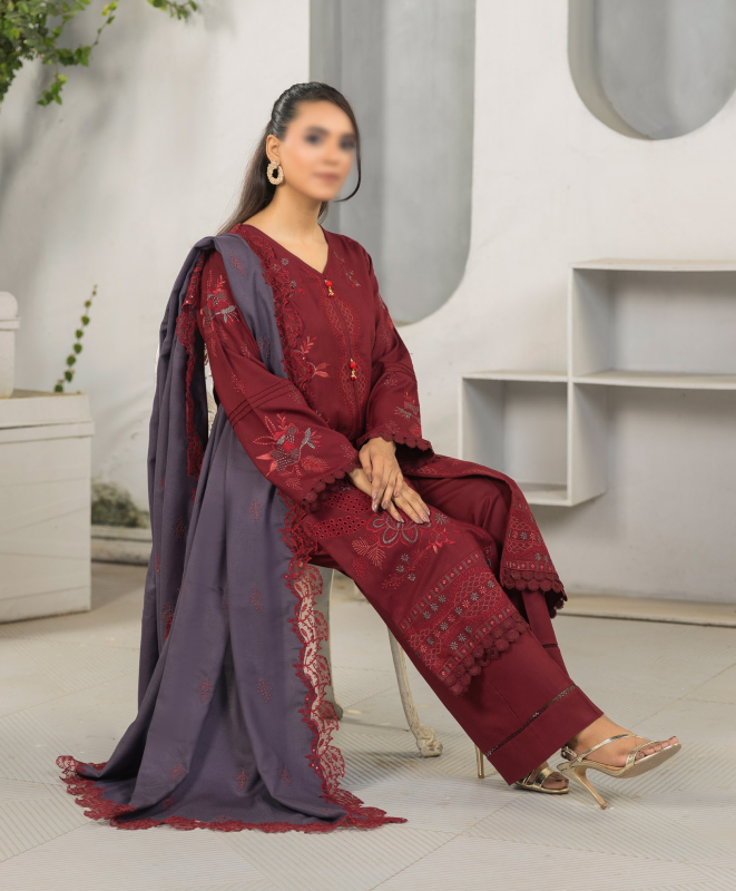 l 3 Piece Unstitched Suit — Shirt, Trouser & Shawl