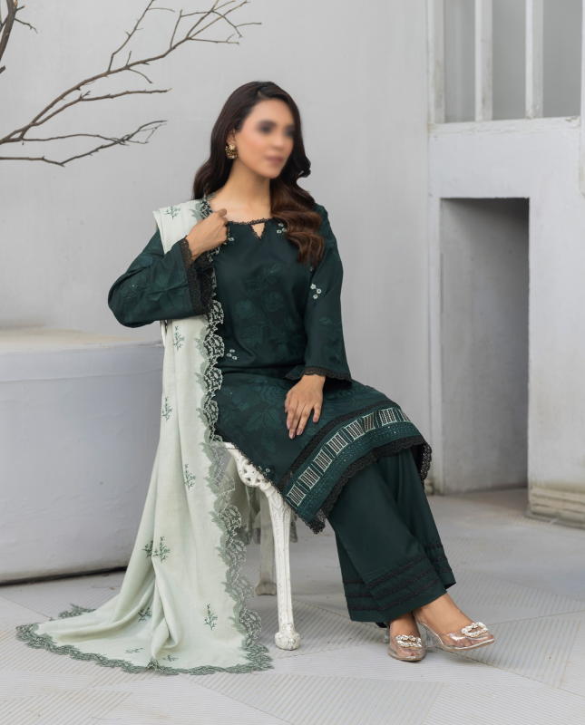 l 3 Piece Unstitched Suit — Shirt, Trouser & Shawl