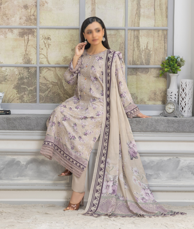 Unfold winter charm with Fantak TABEER Vol.01, a 3 Piece Unstitched Staple Slub Embroidered Collection featuring 9 mesmerizing designs. Crafted on premium Staple Slub fabric, this collection is perfect for the winter season, combining softness with durability. Each suit is styled with Digital Print Embroidery and paired with a Digital Print Diamond Doriya Dupatta, adding a touch of elegance and finesse.