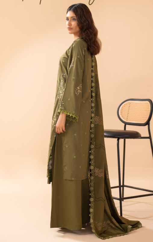 * 3 Piece Unstitched Suit — Shirt, Trouser & Dupatta