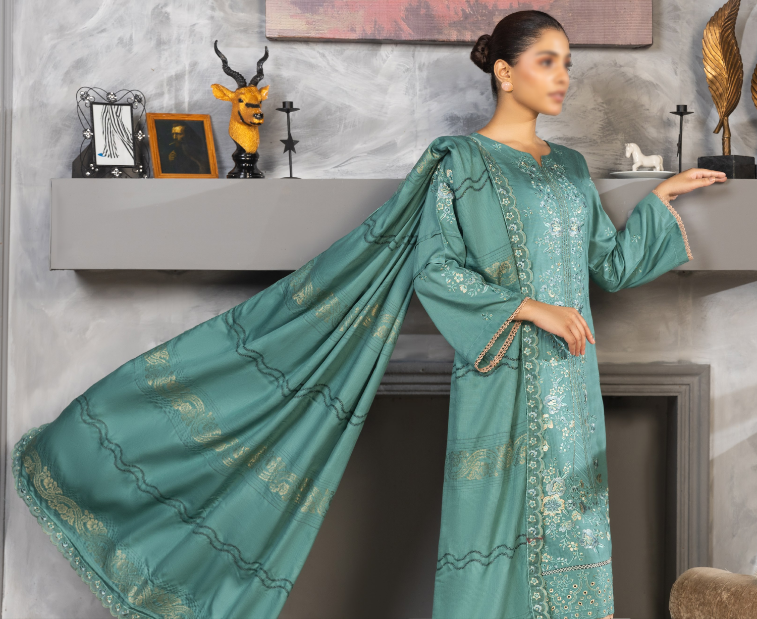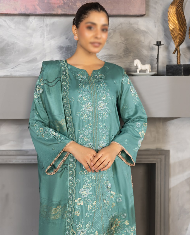 Unveil a new level of sophistication with Fantak TASSUR Vol.02, a Luxury 3 Piece Unstitched Collection designed for those who appreciate elegance with comfort. Crafted from Fancy Doriya Viscose, each outfit features exquisite embroidery work and comes with a Jacquard Embroidered Dupatta, making it the perfect choice for your winter wardrobe.
