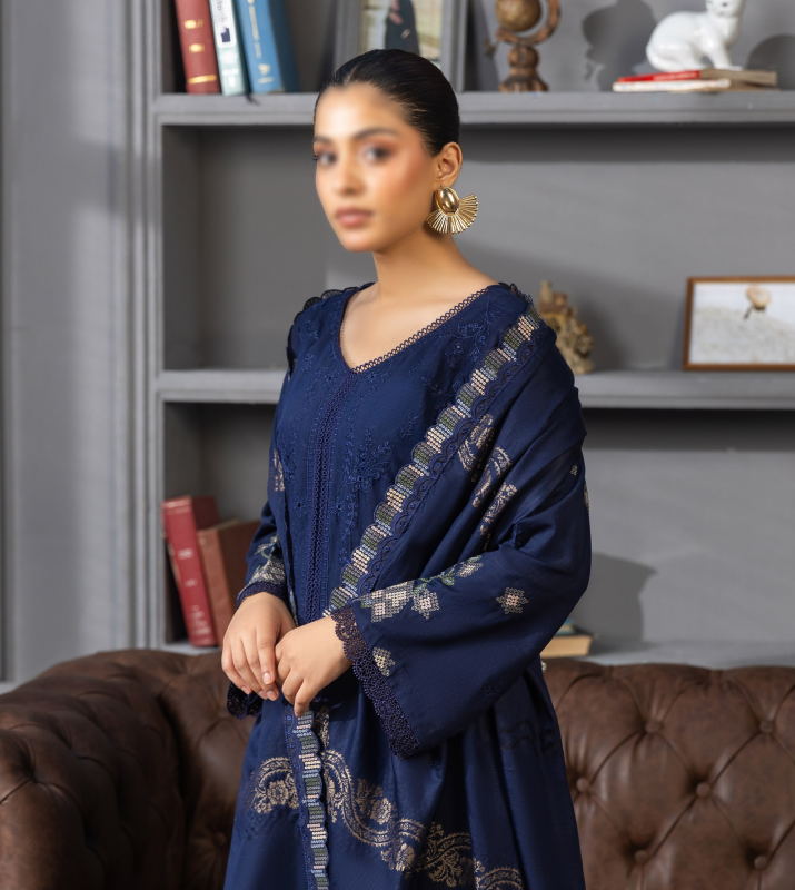 Unveil a new level of sophistication with Fantak TASSUR Vol.02, a Luxury 3 Piece Unstitched Collection designed for those who appreciate elegance with comfort. Crafted from Fancy Doriya Viscose, each outfit features exquisite embroidery work and comes with a Jacquard Embroidered Dupatta, making it the perfect choice for your winter wardrobe.