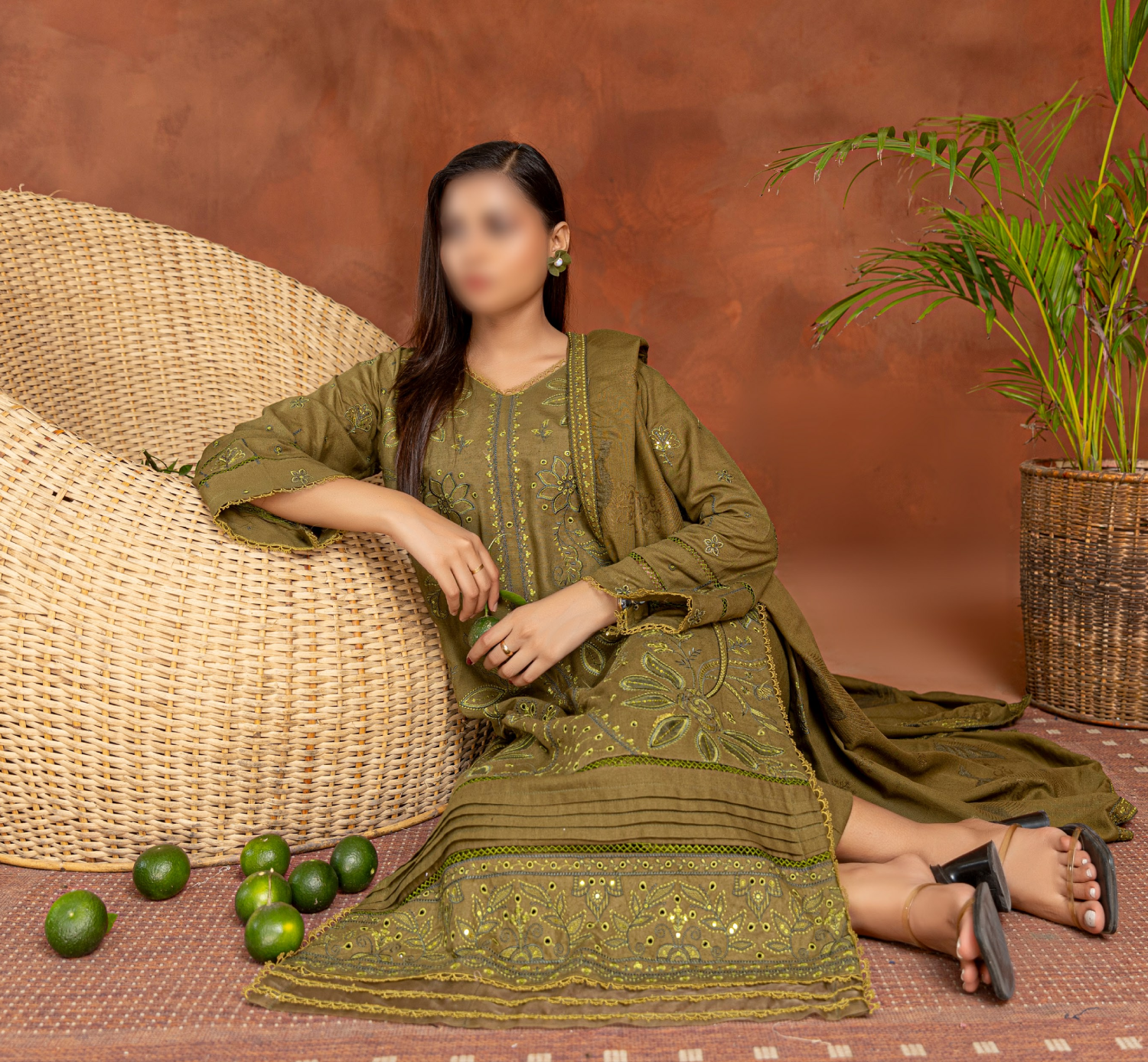 l3 Piece Unstitched Suit — Shirt, Trouser & Dupatta