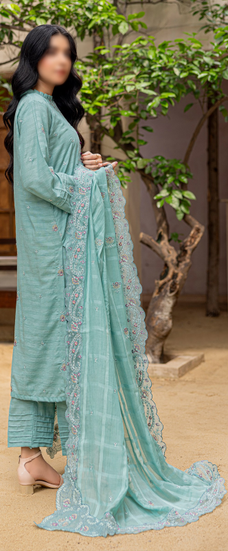 l 3 Piece Unstitched Suit — Shirt, Trouser & Dupatta