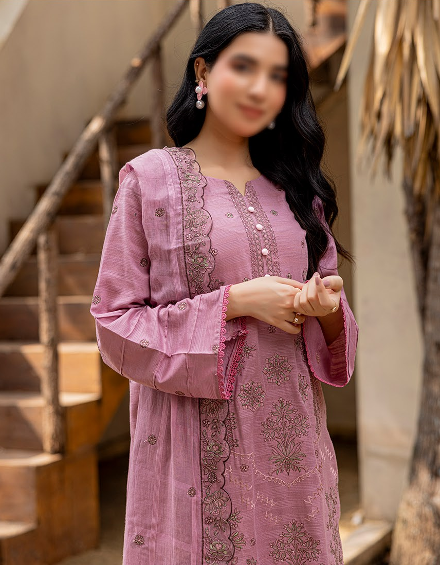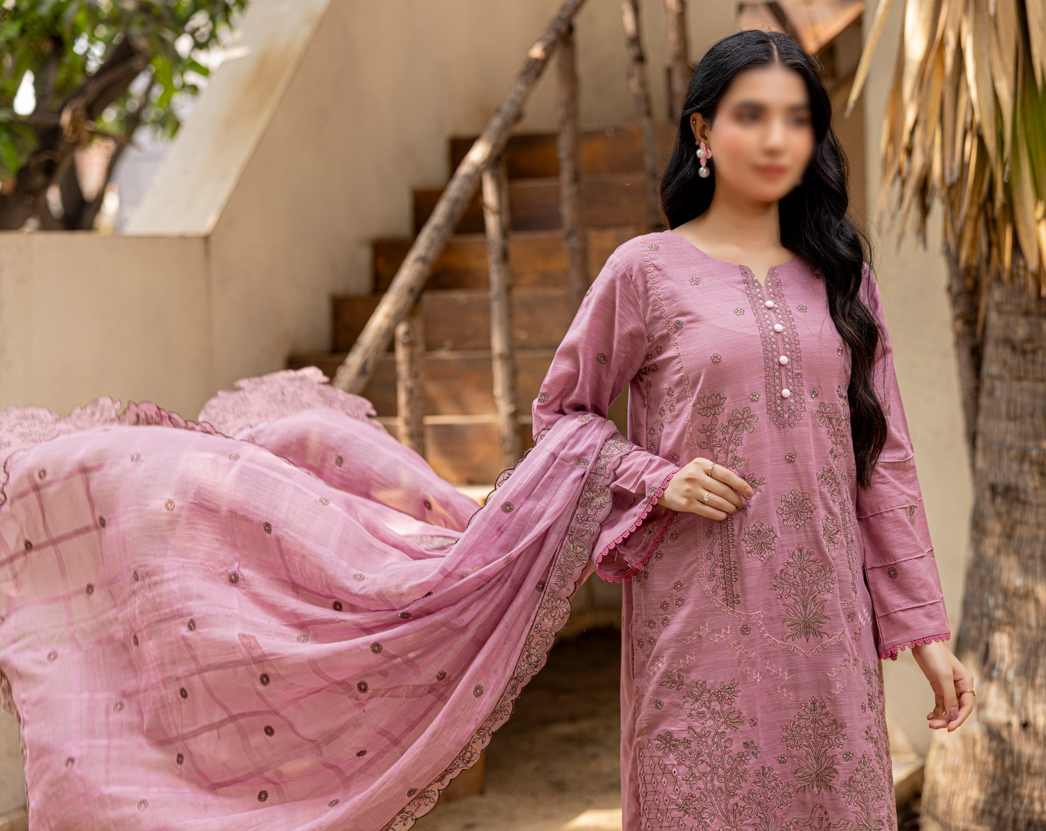 l 3 Piece Unstitched Suit — Shirt, Trouser & Dupatta