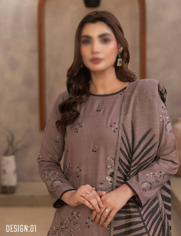 Unveil timeless elegance with Fantak VOGUE Vol.01, a Luxury 3 Piece Unstitched Winter Collection designed to bring sophistication, warmth and premium styling together. Crafted from Luxury Slub Dhanak, each suit features stunning embroidery work paired with a Velvet Jacquard Woolen Shawl, giving you the perfect refined winter premium look.