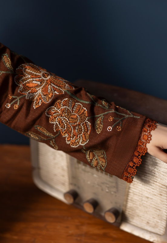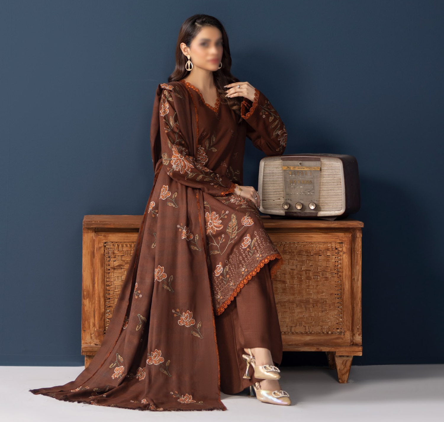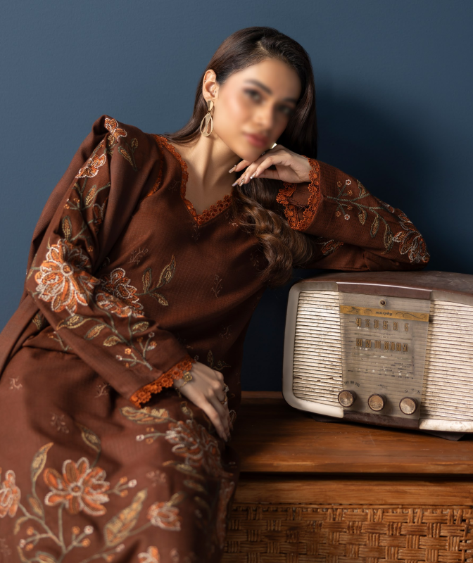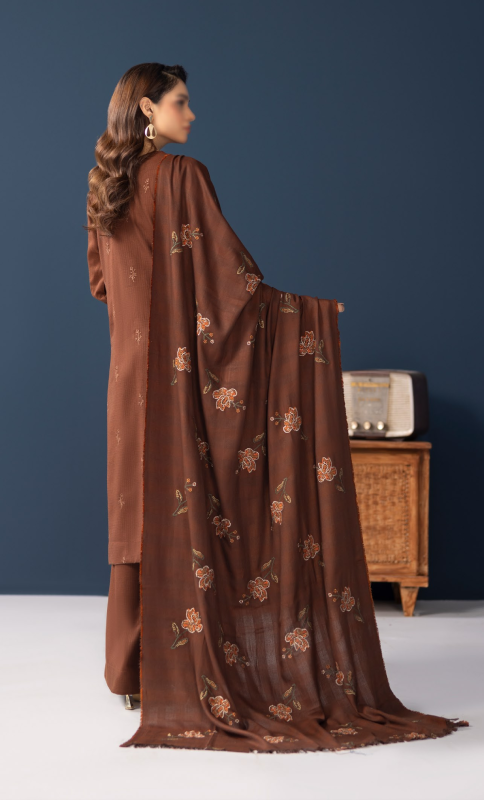 Wrap yourself in luxury with Fantak ZIMAL Vol.01, a 3 Piece Unstitched Luxury Peach Mono Zari Embroidered Collection featuring 6 elegant designs. Made from soft and warm Peach Mono fabric, this collection is designed to bring sophistication and comfort together for the winter season. Each suit showcases intricate Zari Embroidery and comes with a Peach Check Embroidered Shawl, creating a classy and timeless winter ensemble.