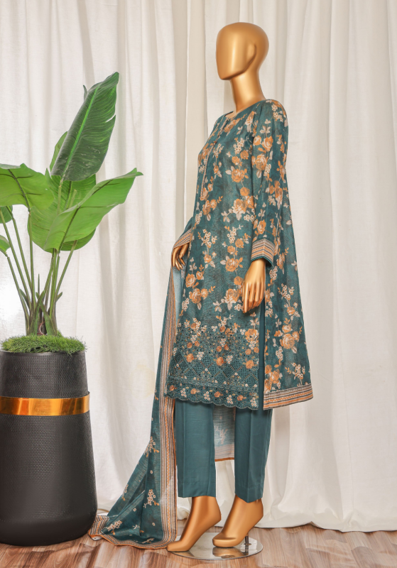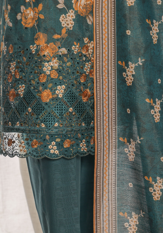 Introducing exquisite Premium Khaddar Chimki Embroidered Collection. This stunning 3-piece unstitched suit is designed for winter elegance, featuring high-quality Premium Khaddar Fabric enhanced with shimmering and detailed Chimki Embroidery. Paired with a complementary Khaddar Dupatta, this suit offers a sophisticated and festive look, perfect for any occasion.