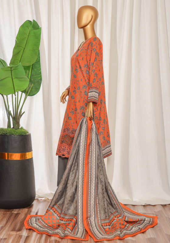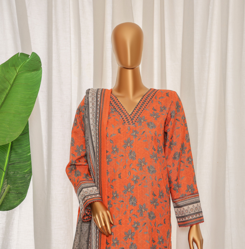 3PC Premium Khaddar Unstitched Suit with Elegant Chimki Embroidery