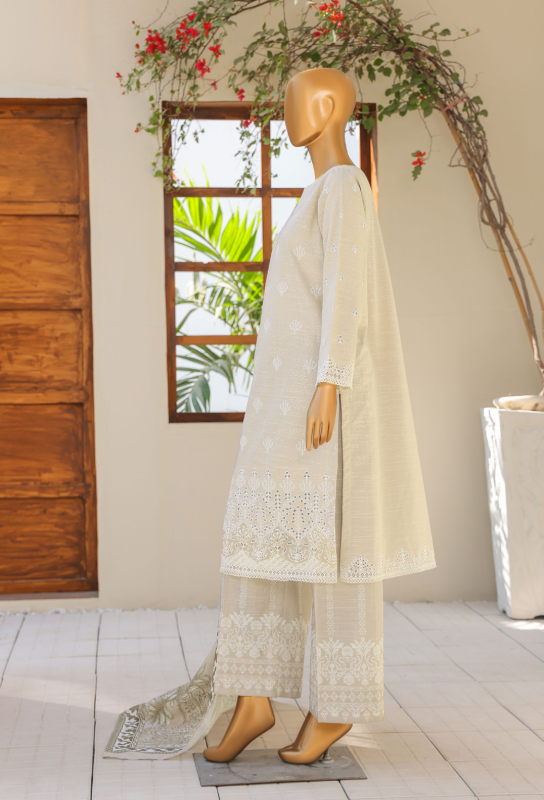 Introducing premium winter wear: the 3-Piece Unstitched Khaddar Embroidered Chikankari Collection. This exquisite suit combines the traditional charm of elegant Chikankari Embroidery with the warmth of rich Khaddar Fabric. It is beautifully paired with a luxurious, soft Pashmina Shawl, making it your perfect sophisticated winter ensemble.