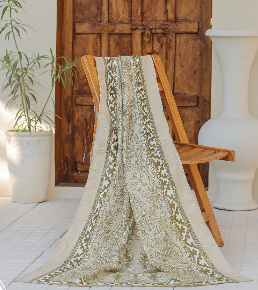 3PC Unstitched Khaddar Embroidered Chikankari Suit with Luxurious Pashmina Shawl